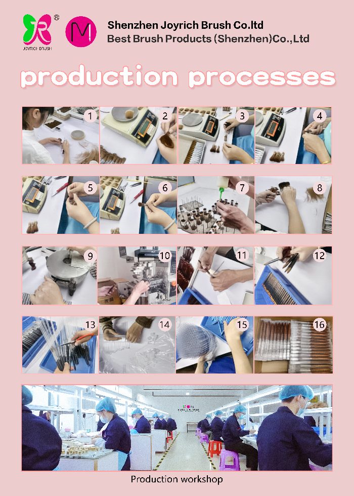 బ్రష్లు గ్లూ అప్లికేషన్, స్టెరిలైజేషన్, పదేపదే సీలింగ్, ఎండబెట్టడం, విచ్చలవిడి వెంట్రుకలను తొలగించడానికి శుభ్రపరచడం మరియు తుది ఆకృతిని కలిగి ఉంటాయి.